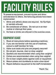 According to Risk Management in Sport – Issues and Strategies, the following guidelines should be followed when using signs to warn members/guests about risks: